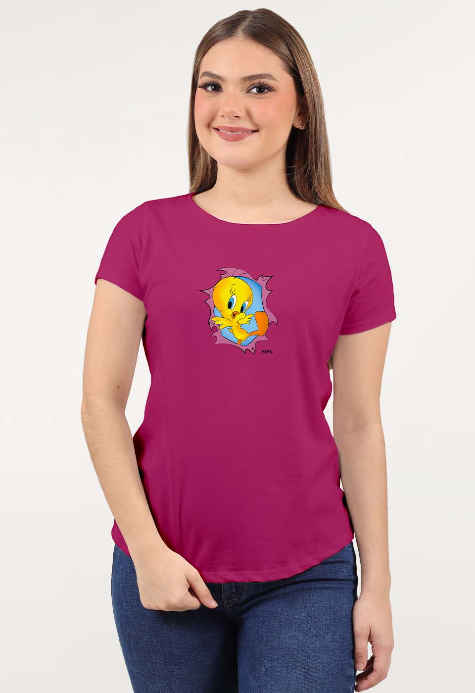Camiseta para mujer, regular fit, cuello redondo, manga corta con estampado. Una camiseta con tu estilo personal para combinar con todo, elaborada con la tela más duradera, suave, cómoda y fresca. Nuestra tela especial de algodón peinado con las lavadas no perderá su color ni forma.