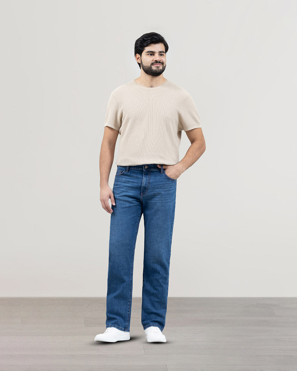 Jean para hombre, bota recta o straight, tiro medio, tela stretch premium. El corte recto o straight es nuestro jean clásico diseñado con pierna de corte recto a partir de la cadera y hasta el ruedo. Su elaboración en telas de excelente calidad te dará una prenda duradera y con mucho estilo