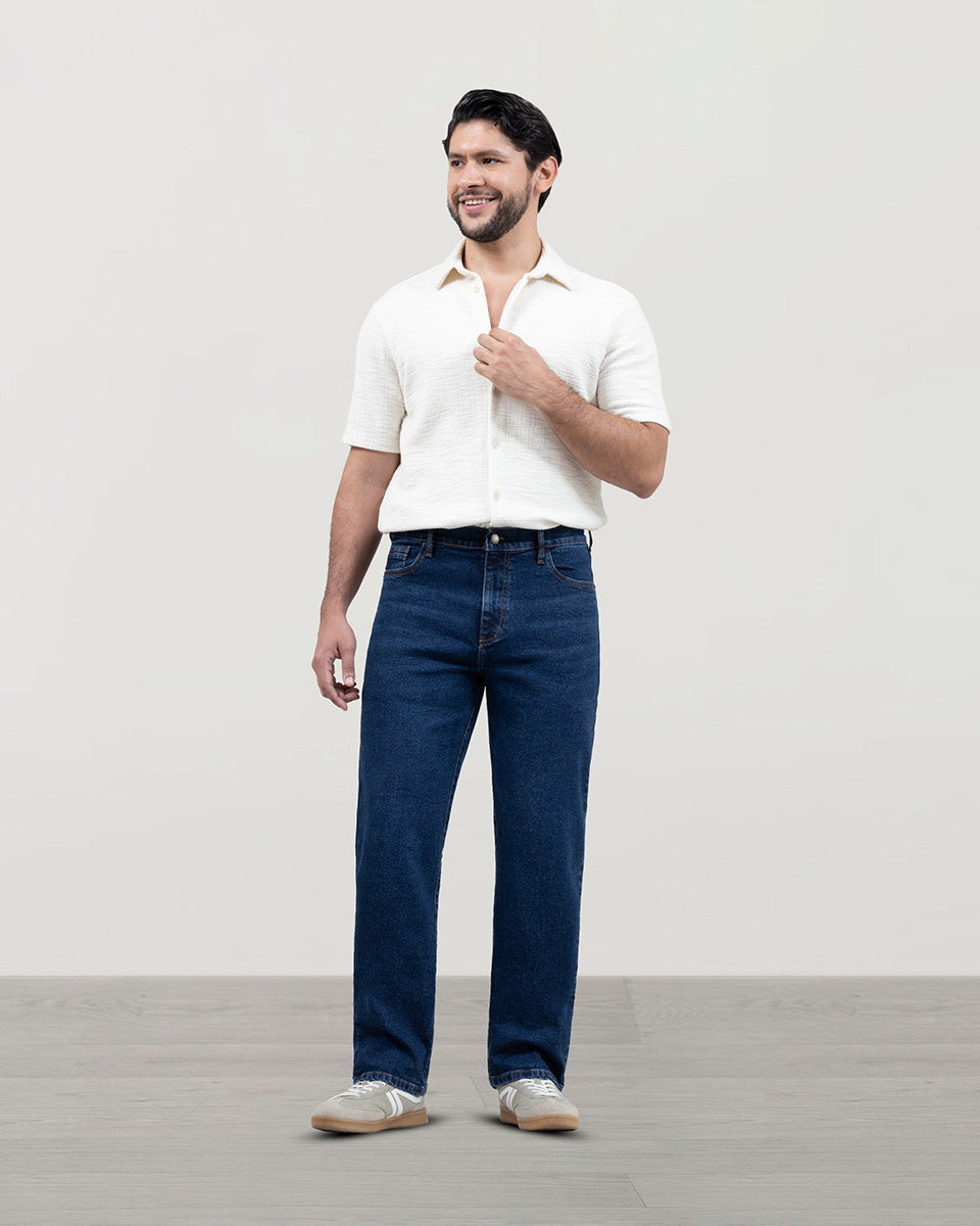 Jean para hombre, bota recta o straight, tiro medio, tela stretch premium. El corte recto o straight es nuestro jean clásico diseñado con pierna de corte recto a partir de la cadera y hasta el ruedo. Su elaboración en telas de excelente calidad te dará una prenda duradera y con mucho estilo