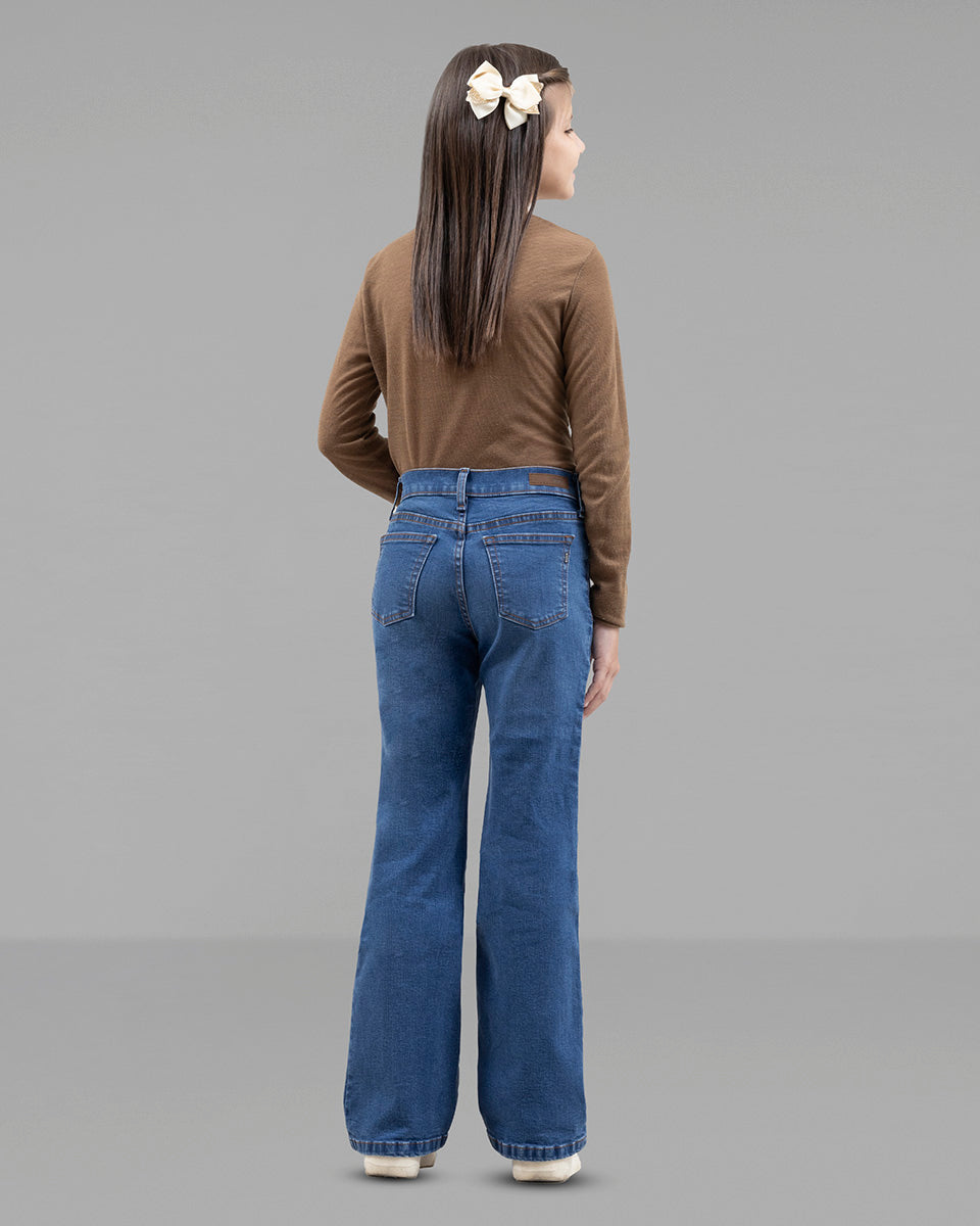 Jean corte bota de tiro medio para las más pequeñas de la casa. Ideal para combinar con todo, confeccionado con tela elástica premium que brinda comodidad y tecnologías para un ajuste perfecto.