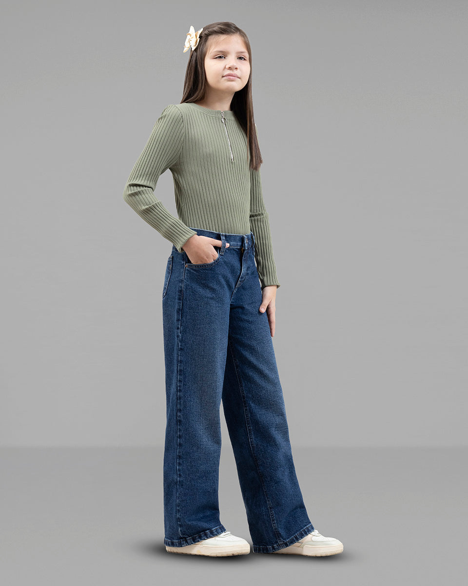 Wide Leg jeans ofrece comodidad y estilo para las más pequeñas de la casa. Su corte holgado en el muslo y el ruedo ancho proporciona confort durante todo el día.