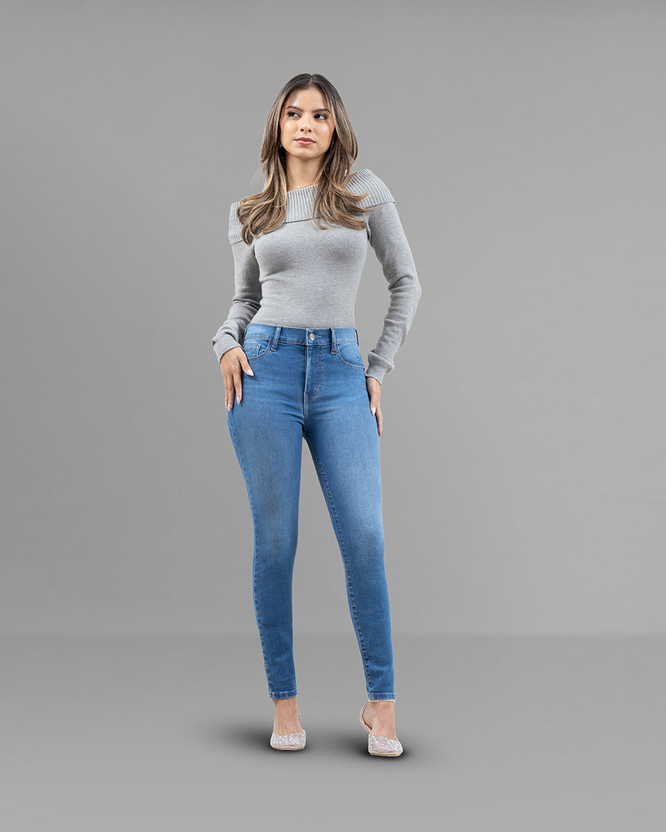 Jean skinny con tela stretch, premium tiro alto que se ajusta a tu figura perfectamente. Diseñados para favorecer todo tipo de cuerpo; alargan tu silueta y definen tu cintura haciéndote lucir esbelta.