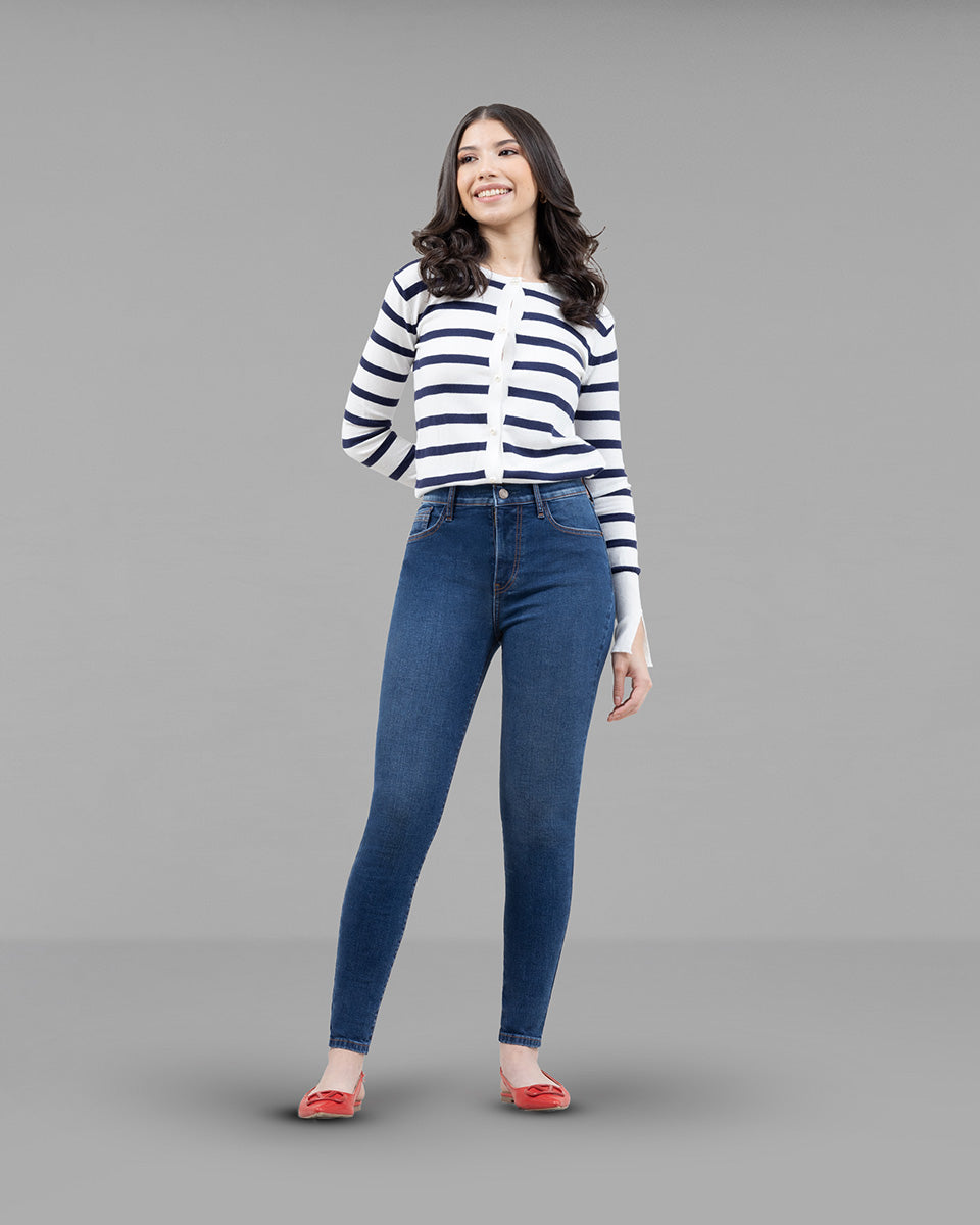 Jean skinny con tela stretch, premium tiro alto que se ajusta a tu figura perfectamente. Diseñados para favorecer todo tipo de cuerpo; alargan tu silueta y definen tu cintura haciéndote lucir esbelta.