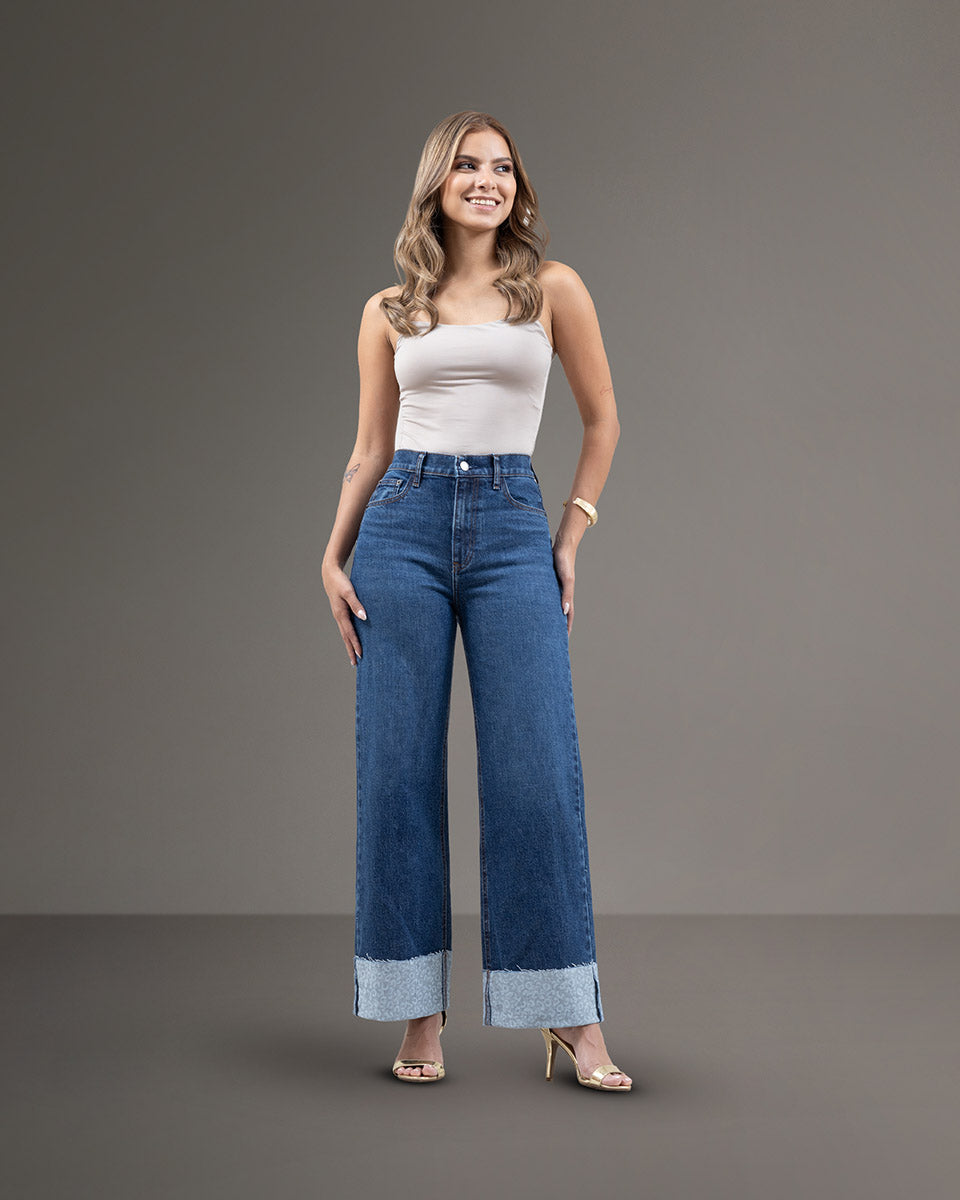 Jean pierna ancha , con tela stretch premium, tiro súper alto que se ajusta a tu figura perfectamente y te hace lucir a la moda Diseñados para favorecer todo tipo de cuerpo; Su silueta estilizada de tiro súper alto y fit holgado alarga tus piernas y ayuda a equilibrar el ancho de las caderas.