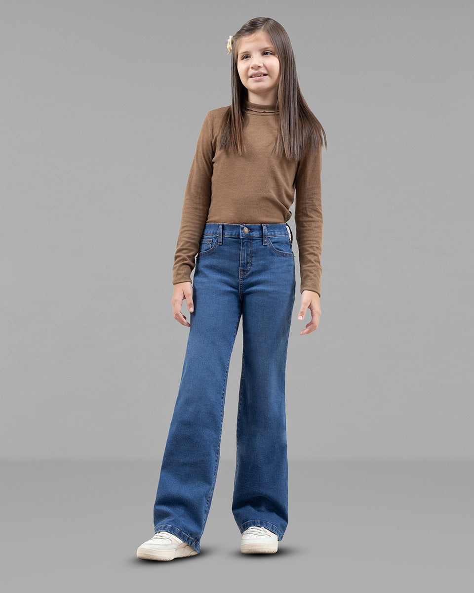 Jean corte bota de tiro medio para las más pequeñas de la casa. Ideal para combinar con todo, confeccionado con tela elástica premium que brinda comodidad y tecnologías para un ajuste perfecto.