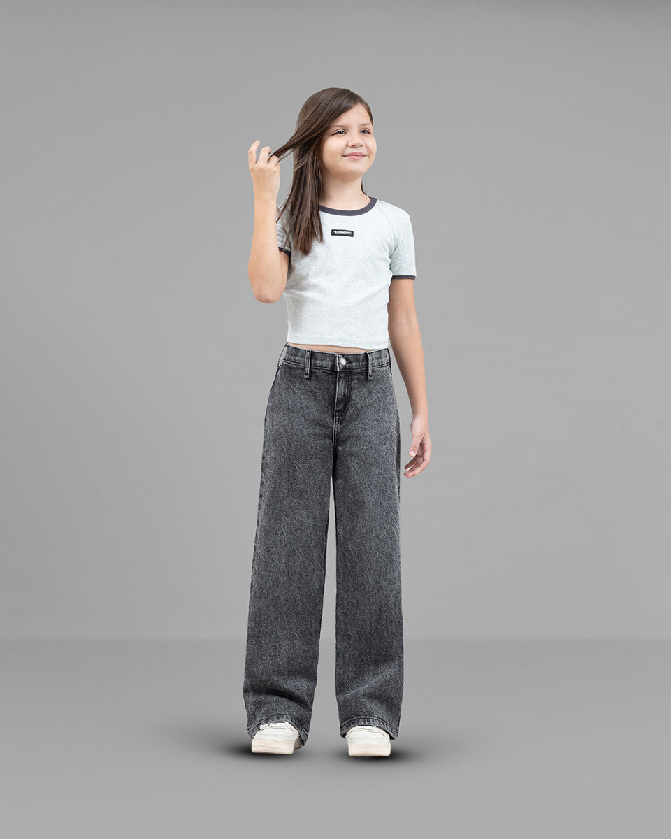 Wide Leg jeans ofrece comodidad y estilo para las más pequeñas de la casa. Su corte holgado en el muslo y el ruedo ancho proporciona confort durante todo el día.