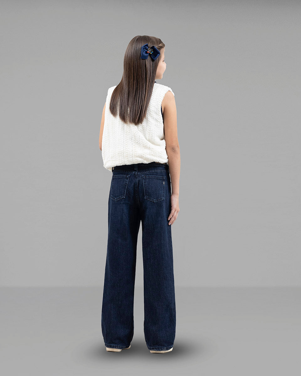 Wide Leg jeans ofrece comodidad y estilo para las más pequeñas de la casa. Su corte holgado en el muslo y el ruedo ancho proporciona confort durante todo el día.