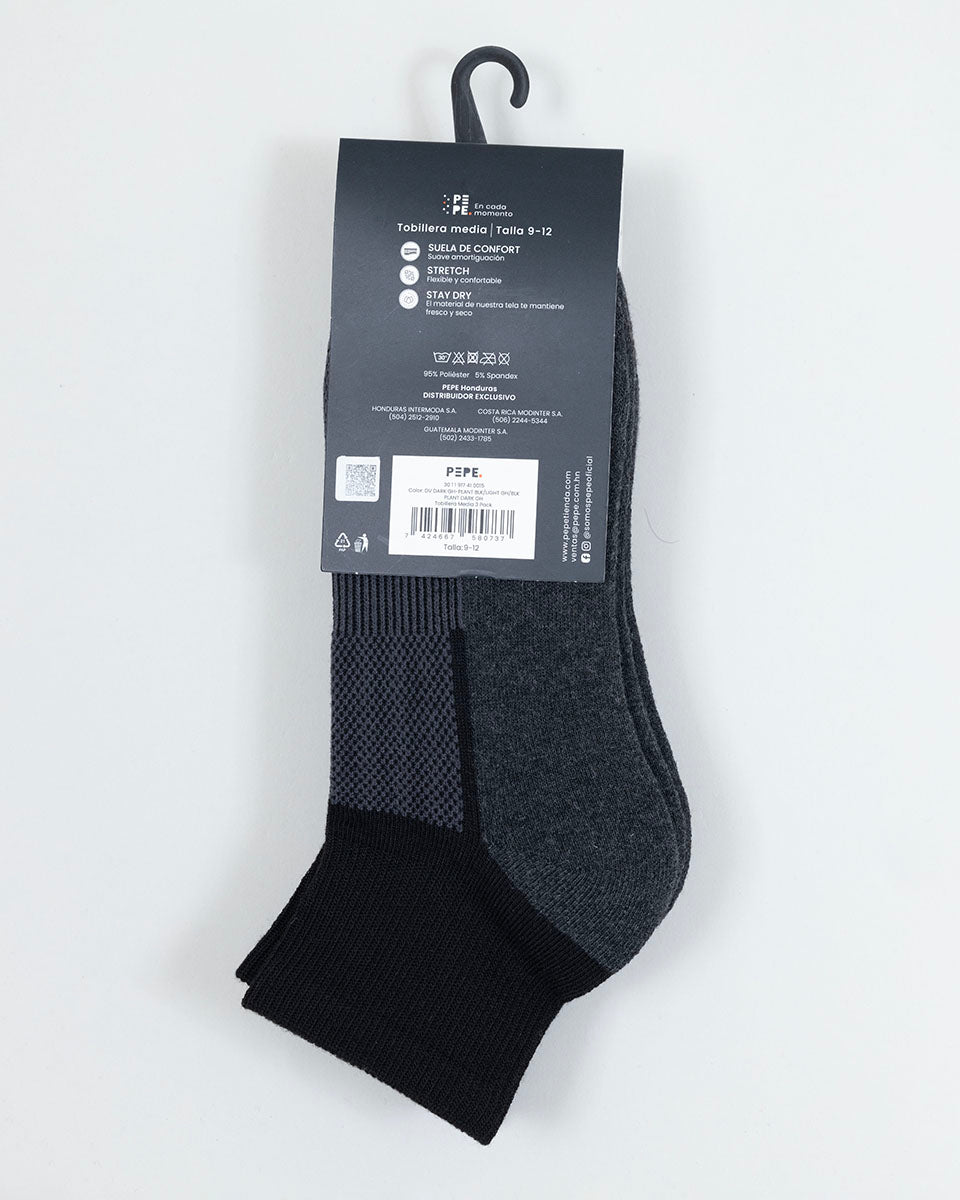 Calcetas tobillera media de hombre con modernos diseños y colores, sellos de marca en tono contraste y efecto acanalado. Estas medias elaboradas en mezcla de algodón especial, ligeramente sedosos para darte comodidad; flexibles, confortables y sobre todo transpirables para brindarte frescura.